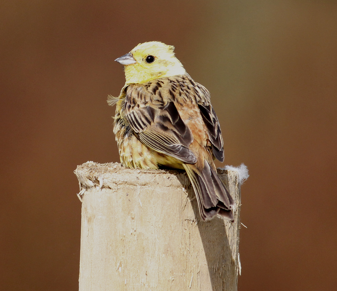I drove back over Stalmine Moss where I followed the song of a Yellowhammer, an increasingly scarce farmland bird which has reached almost celebrity status with local birders. A yellow male was singing from a fence post with a browner bird flying off as I approached the spot.