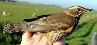 There was an improvement in numbers today with a count of approximately 100 Linnets, 2 Wrens, 1 Kestrel and a totally unexpected first for the site - a Goldcrest. The ‘crest was moving along the roadside vegetation that borders the field. Promised colder weather should see larger counts of Linnets and hopefully a chance to continue with the Linnet ringing project.